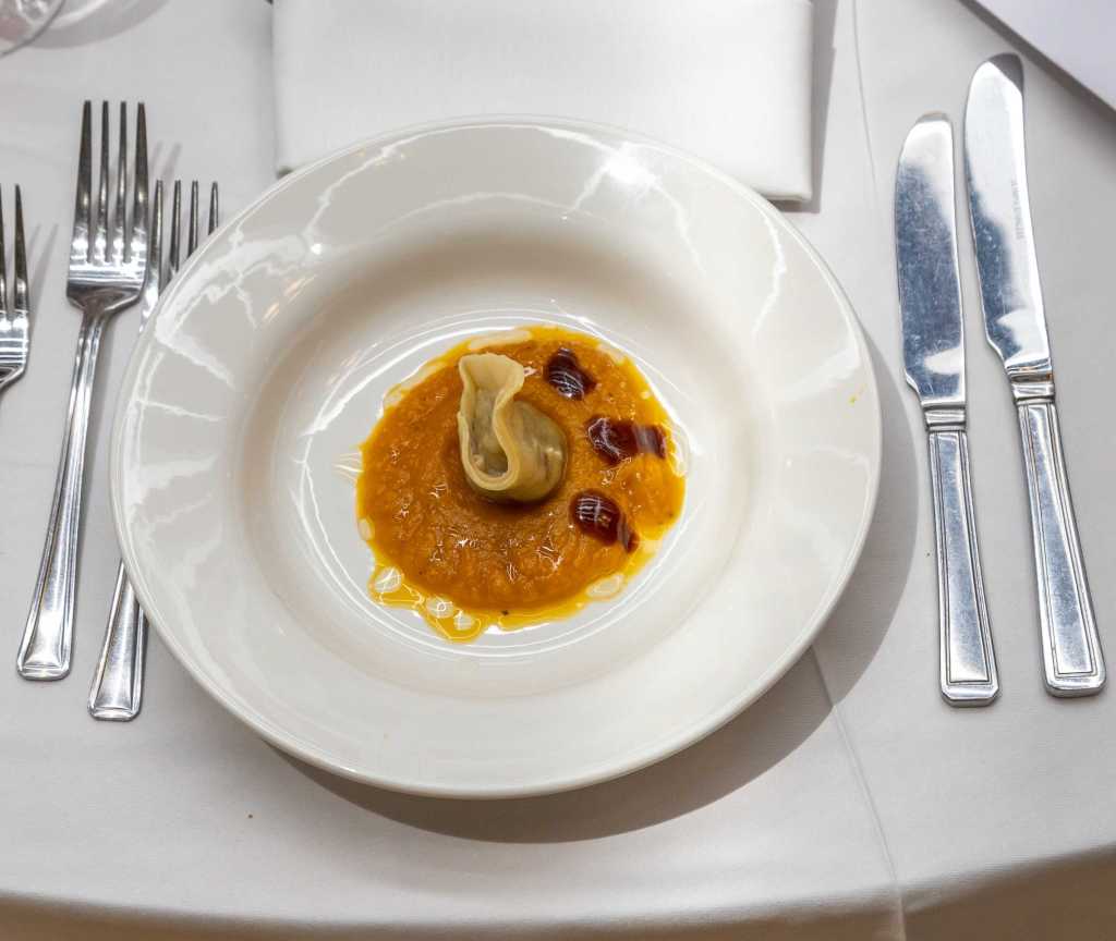This was followed by an autumnal confit duck tortellini in butternut squash velouté, prepared by Anita-Clare Field from La Petite Bouchée, supported by Nathan Reardon, runner-up of this year’s Exmoor Young Chef competition.
