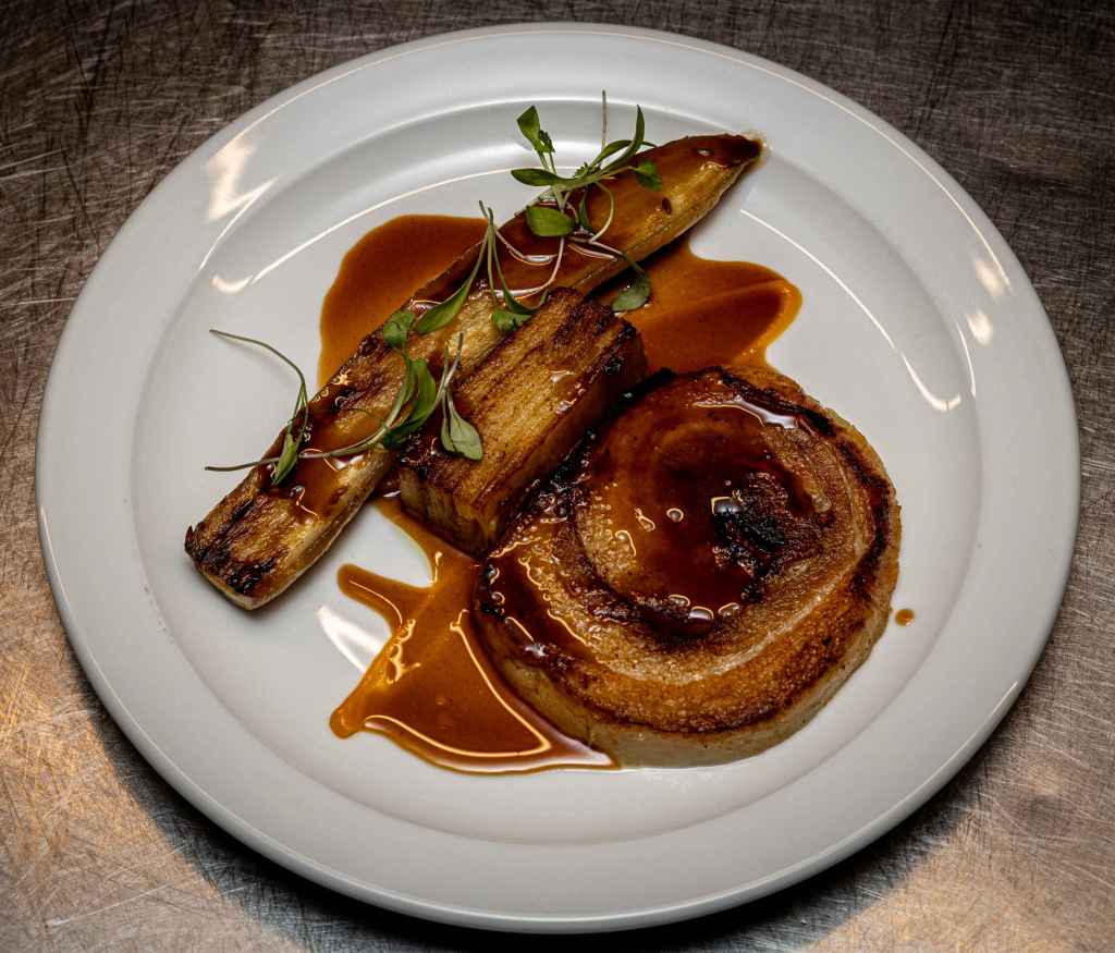The main course was served by Martin Baylis, the Executive Chef for the MB Restaurant group which includes New Coast Kitchen (Croyde) and New Coast Canteen (Braunton). His dish was Middle White Pork Belly, Spiced Carrot and Ras el Hanout.