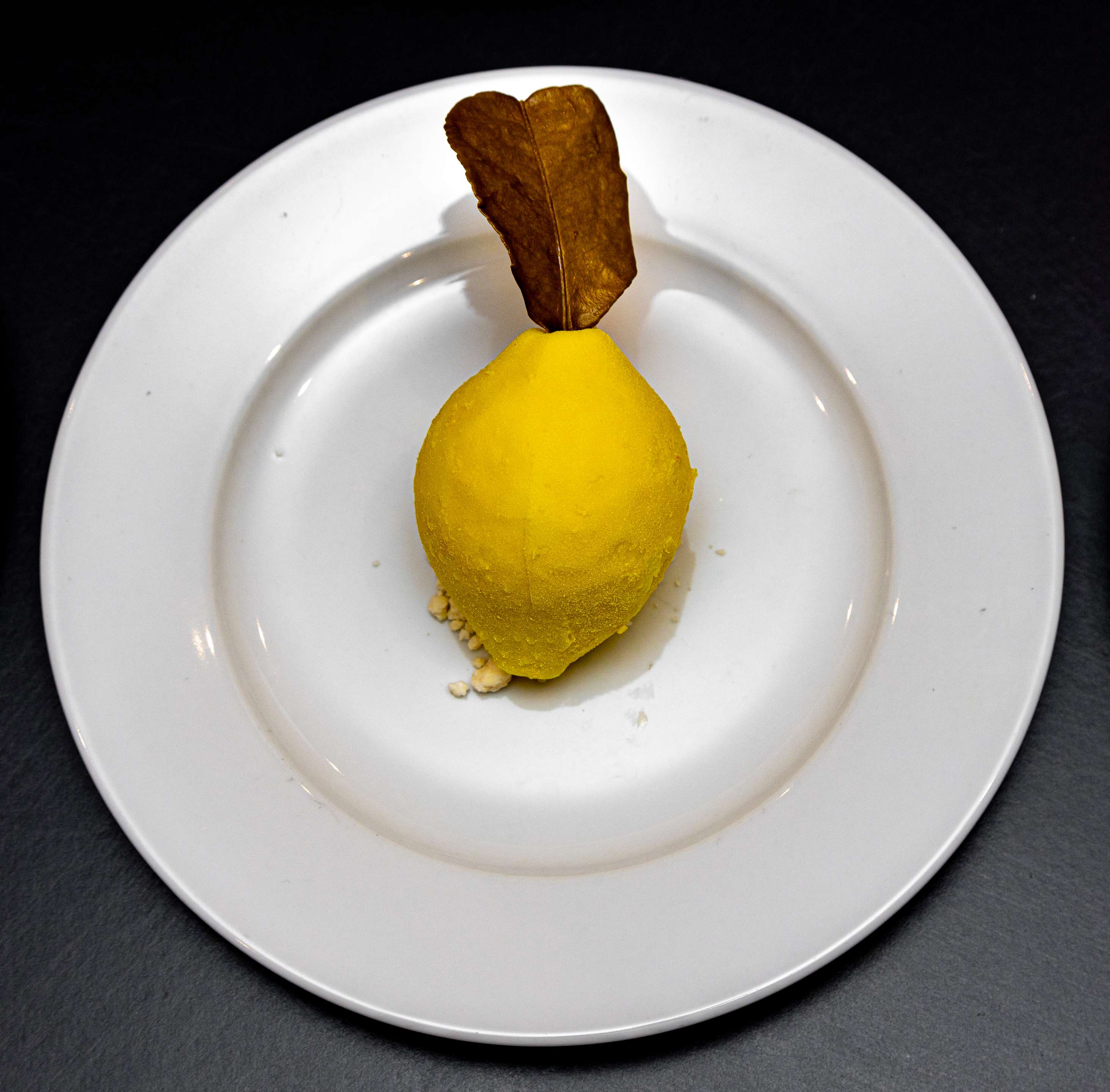 Next up came the pre-dessert, lemon mousse with lemon sherbet and white chocolate, prepared by Exmoor Young Chef Perran Clark and his mentor Carla Jones from the Michelin-Guide listed Seacliff Restaurant at the Sandy Cove Hotel on the North Devon coast.