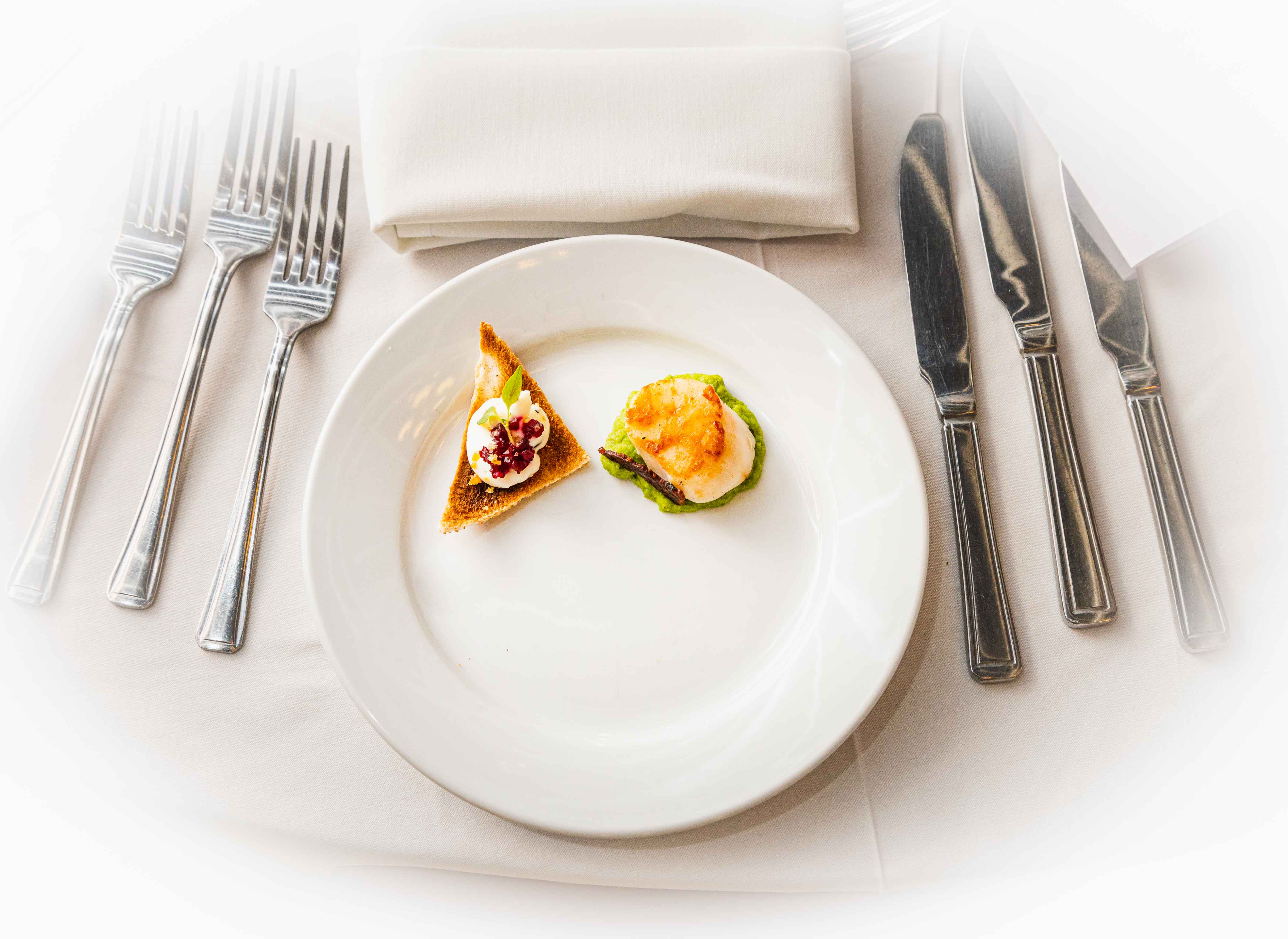 The Amuse Bouche, scallops with pancetta &beetroot with goats cheese and walnut, were prepared by Werner Hartholt from the Butlins Chef Academy and his students Ginny Zdanevičiūtė and Jessica Simmons.