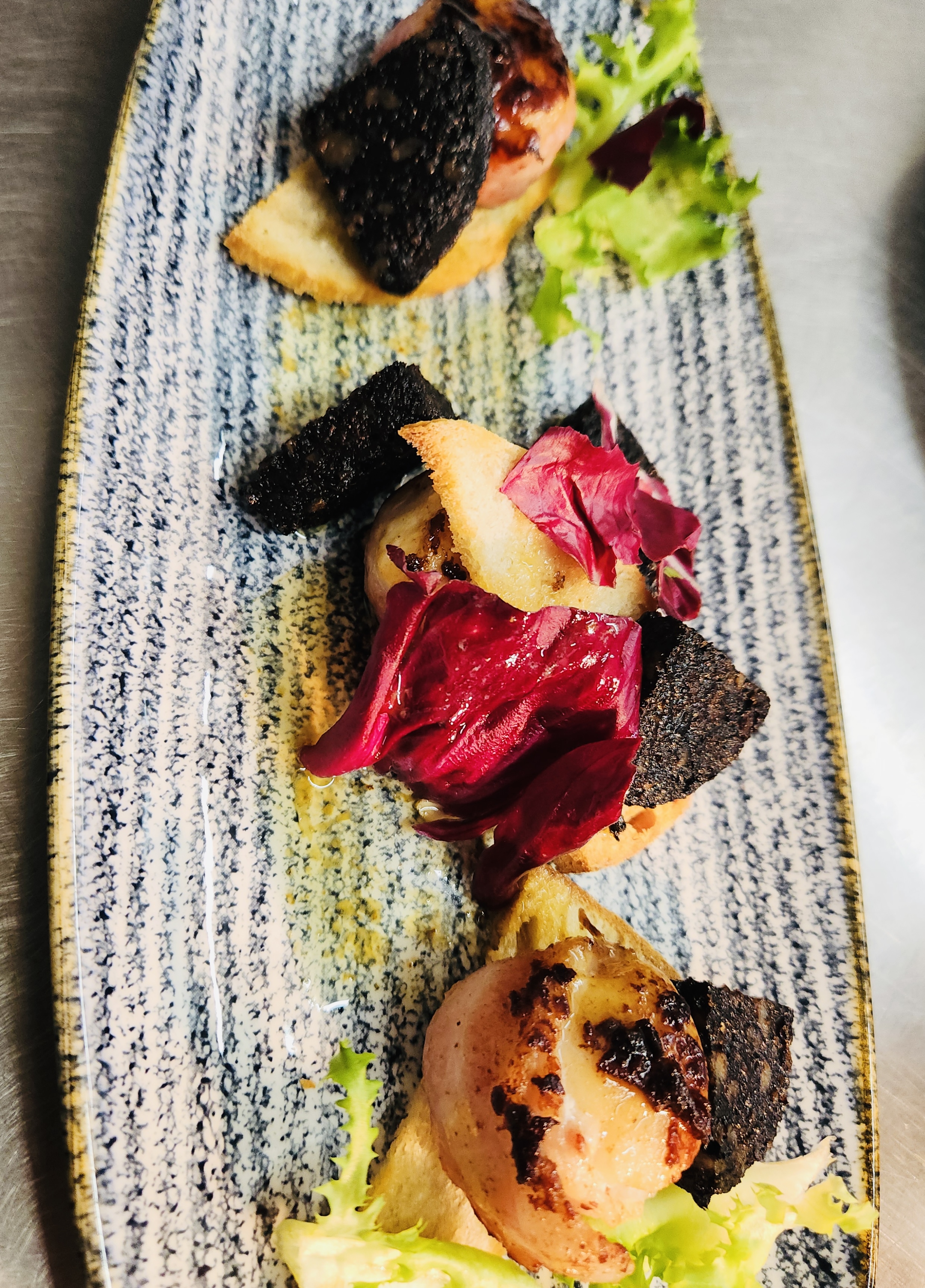 Saffron Poached Pear, Goats Cheese & Black Onion Seeds
