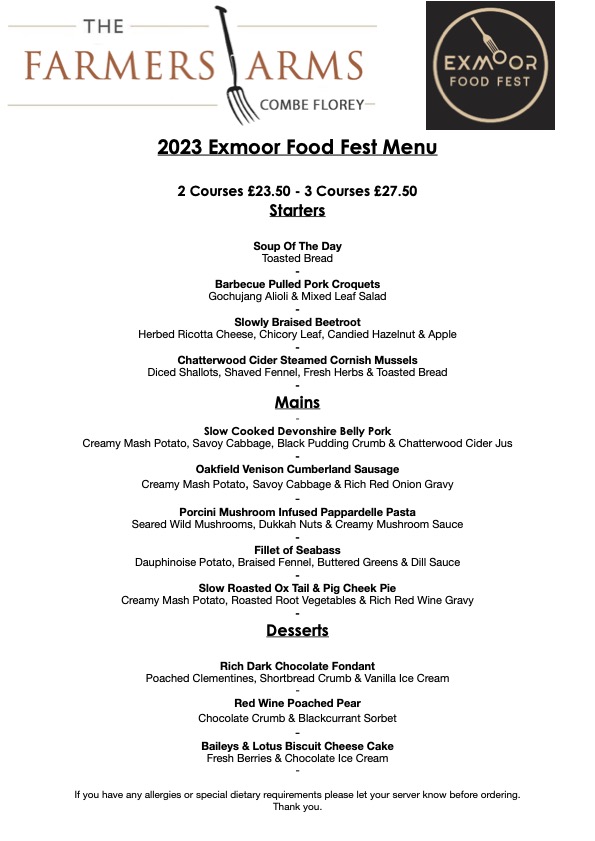 A firm Exmoor Food Fest favourite, the Farmers Arms have played host to several foodie events such as the “Celebration of Beef” a few years ago when four guest chefs joined the Farmers Arms’ head chef to produce five courses involving beef – including the dessert. In 2023, they are hosting the VIP Launch Dinner when 4 guest chefs will be joining the Joe and Sophie in the kitchen for the night.