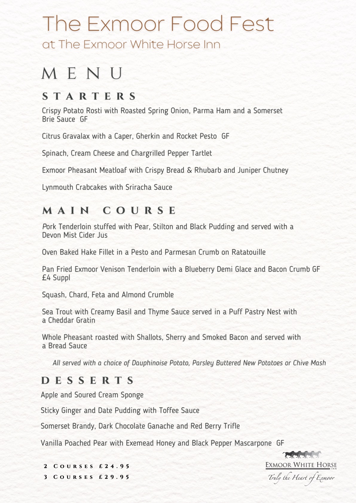 ‘Truly the heart of Exmoor’ Open all year round for Lunch, Dinner and Afternoon Tea