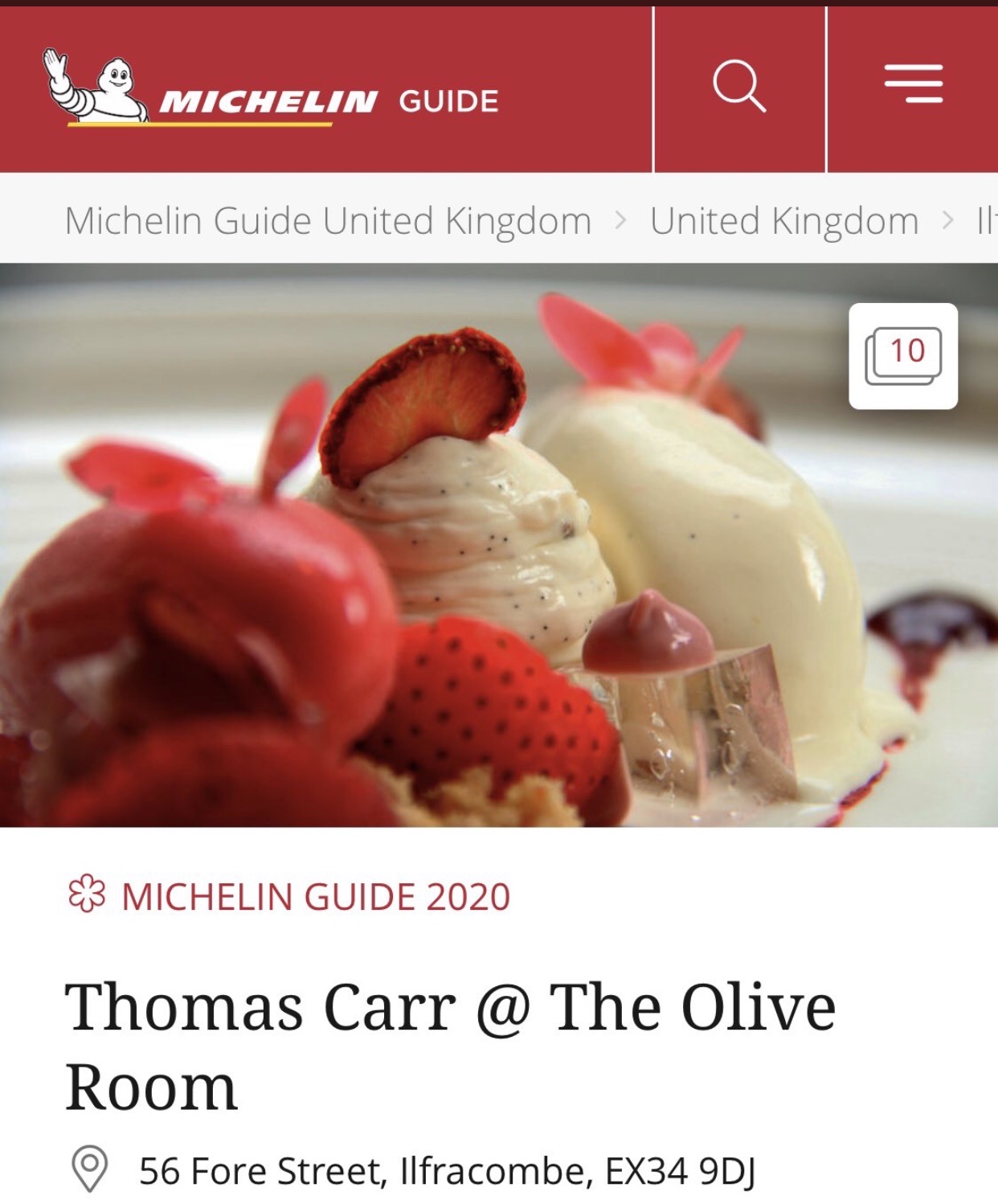 Congratulations to Thomas Carr and his team at The Olive Room in Ilfracombe for retaining their Michelin star! (We’re also excited to announce that that Thomas Carr has already signed up for the 2020 Exmoor Food Fest!)